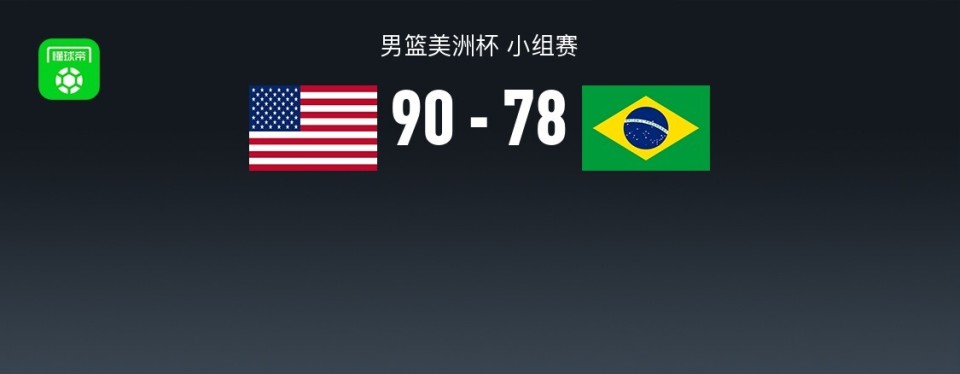 北京时间8月27日男篮美洲杯 小组赛,美国男篮对阵巴西男篮。半场美国男篮40-46巴西男篮,最终美国男篮90-78巴西男篮。美国男篮贾旺特-斯玛特22分7板4助,热迈厄斯-拉姆齐15分4板1助;巴西男篮卡波科洛21分5板1助,亚戈-桑托斯14分1板9助。